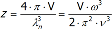 In three-dimensional space, the number of vibrations with a certain frequency is calculated similarly, although the formula will have additional adjustments for fixed coefficients: